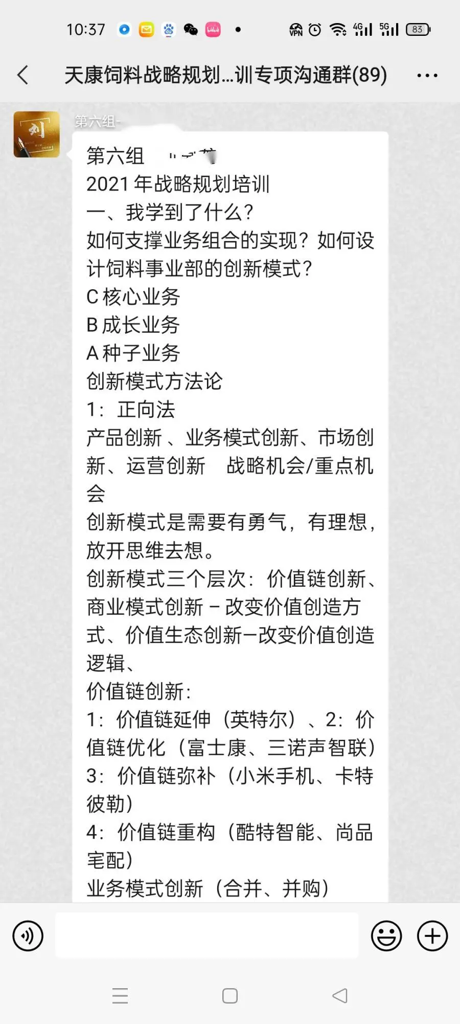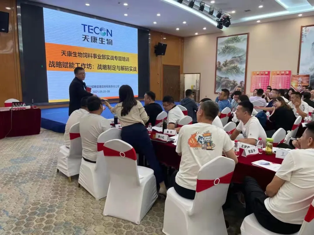 2021年9月5日-8日,天康生物饲料事业部“战略赋能工作坊”实战专题培训正式开启,战略是企业奋斗的指南针,合理可行的战略计划对企业的发展能起到事半功倍的效果,本次课程由天康饲料事业部一把手黄海滨黄总亲自挂帅,携全体产品线责任人汇聚兰州,共创事业部战略蓝图,四天时间共创三年战略计划,立足各个产品线实际情况,实现资源最优配置,为事业部未来三年的快速发展提供助力。